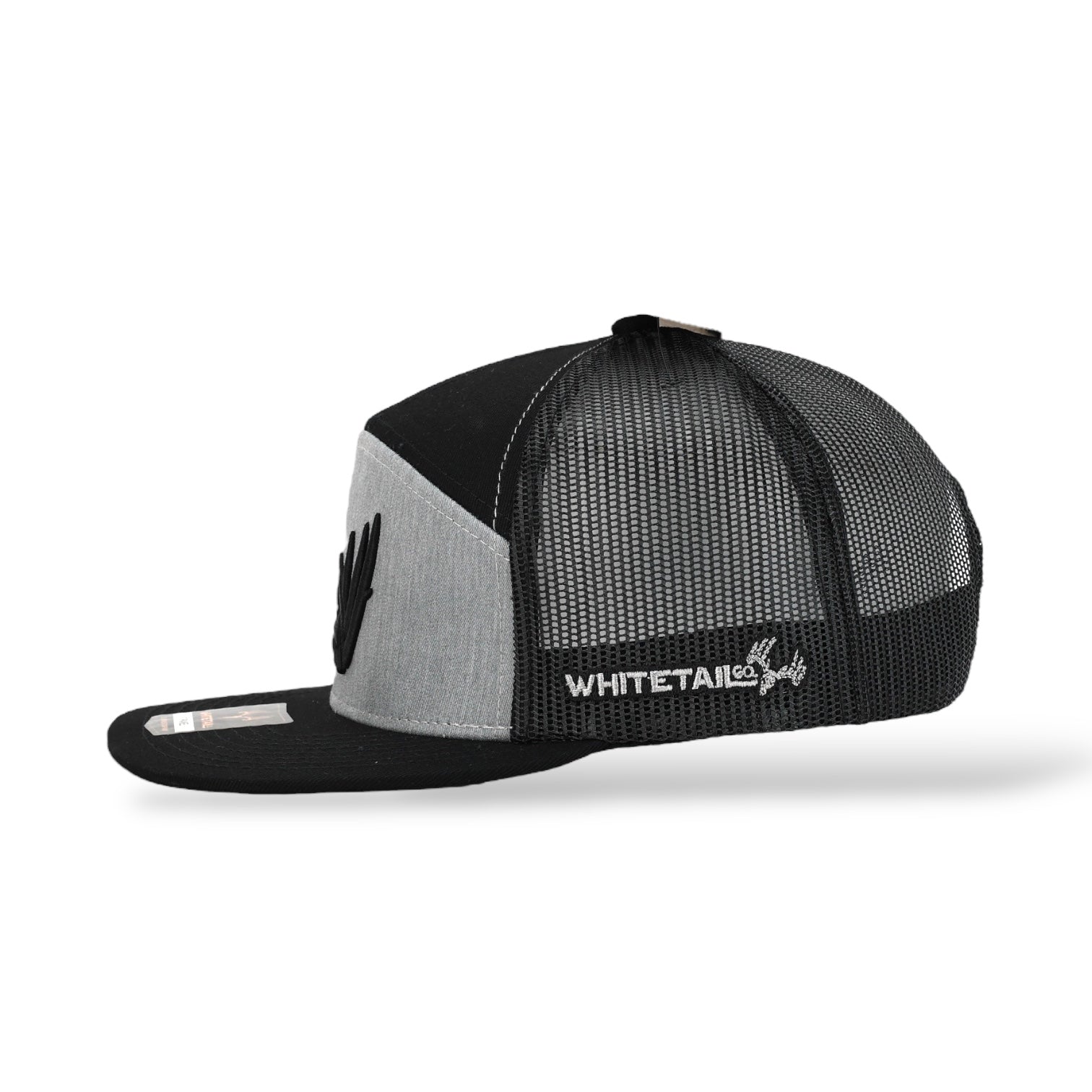 Discover the sleek and modern design of the Whitetail Co. Shed 7 Panel Grey/Black hat! Made with a 3d puff embroidered logo, this snap back cap features a flat bill and 7 panel construction for a comfortable and stylish fit. Perfect for both outdoor adventures and everyday wear.
